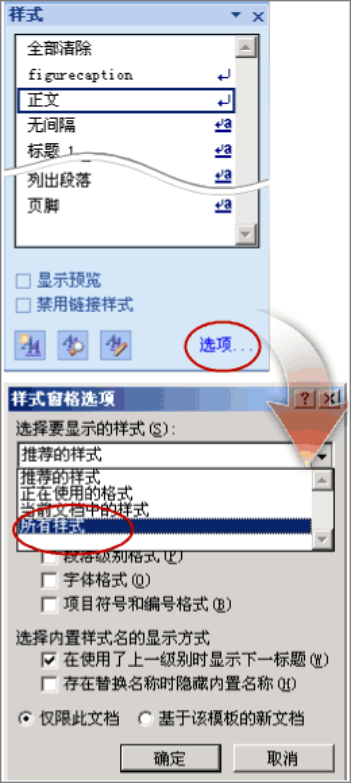 提示:你会发现样式中最多只有标题1、标题2 …… 你可以按选项 -> 选所有样式 -> 按确定。