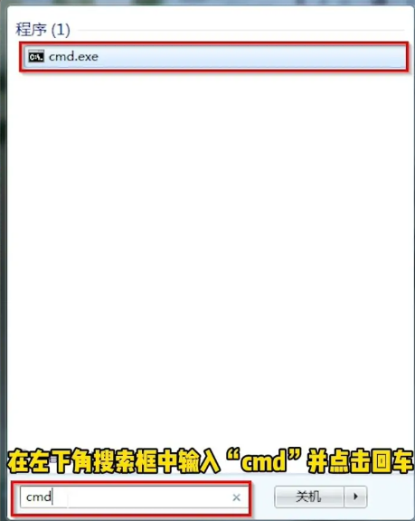 1、在系统桌面左下角搜索框中输入“cmd”回车确认。