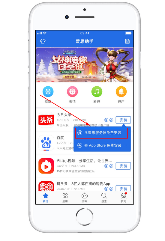 3.在 App Store 无法连接的情况下,爱思助手不会受到影响,使用 PC 端爱思助手或手机端“爱思加强版”,选择“从爱思服务器免费安装”即可正常安装软件。