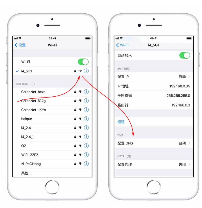 2.如果使用 WiFi 连接,在设置中打开“Wi-Fi”选项,点击已连接网络后的“i”按钮,手动配置 DNS 为“114.114.114.114”等可靠的地址。