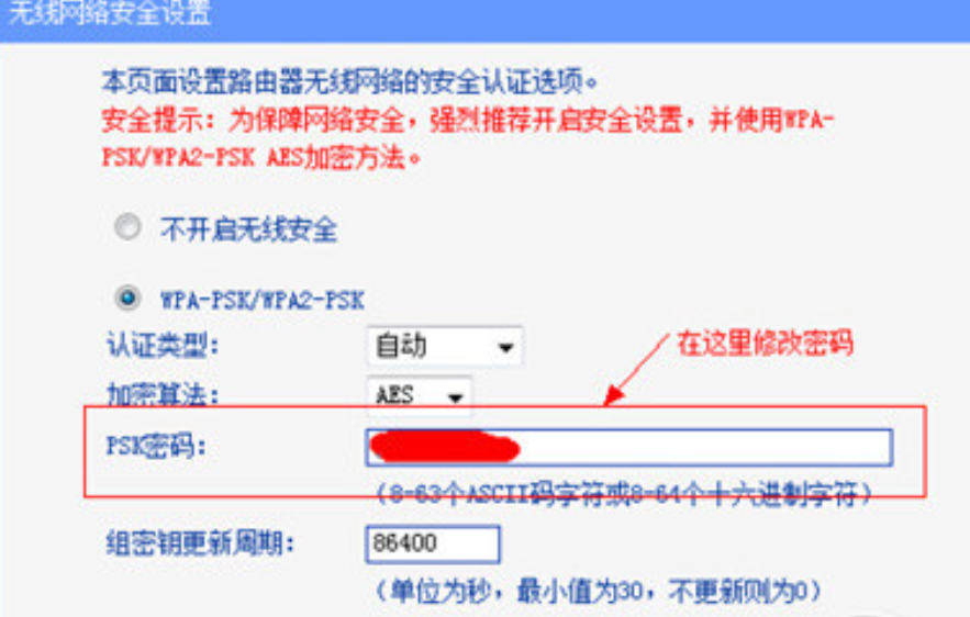 4.点击无线设置-无线安全设置-PSKA密码,进行更改密码;