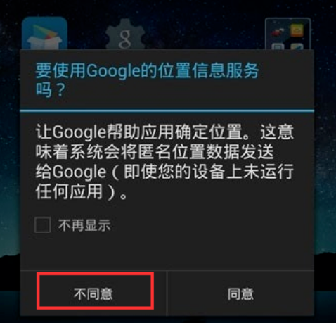 不同意使用谷歌的位置信息;