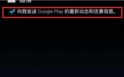 8、选中“向我发送 Google Play 的最新动态和优惠信息“。