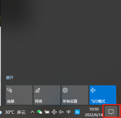2、点击电脑通知栏图标,展开拖动滑块调节亮度。