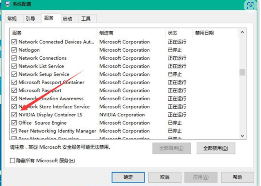 把系统配置切换到服务选项;