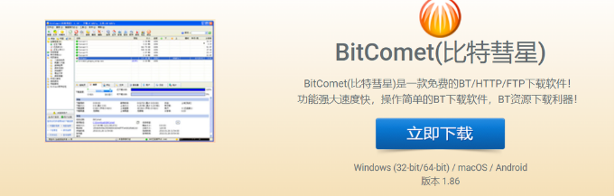 BitComet中文名字叫做”比特彗星“。也是一款免费的BT/HTTP/FTP下载软件,完美支持各种主流BT下载协议。