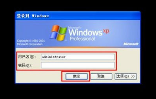 1.重启电脑,屏幕显示系统的登录页面时,同时按住“Ctrl”+“Alt”键,再连续按两次“Delete”键,出现新的登录界面,在用户名的地方输入:Administrator,密码为空,回车登录成功;