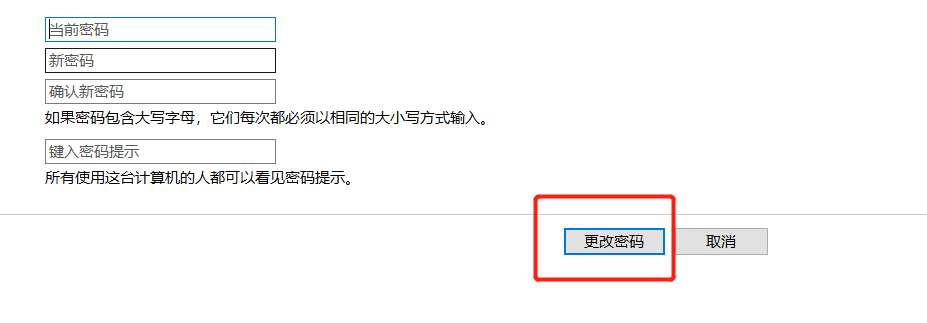 6.输入新的密码和输入相关信息,再点击“更改密码”按钮,更换完成。