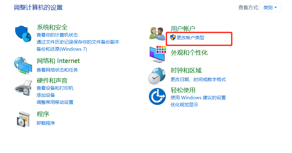 3.找到用户账户-点击进入“更改账户类型”;