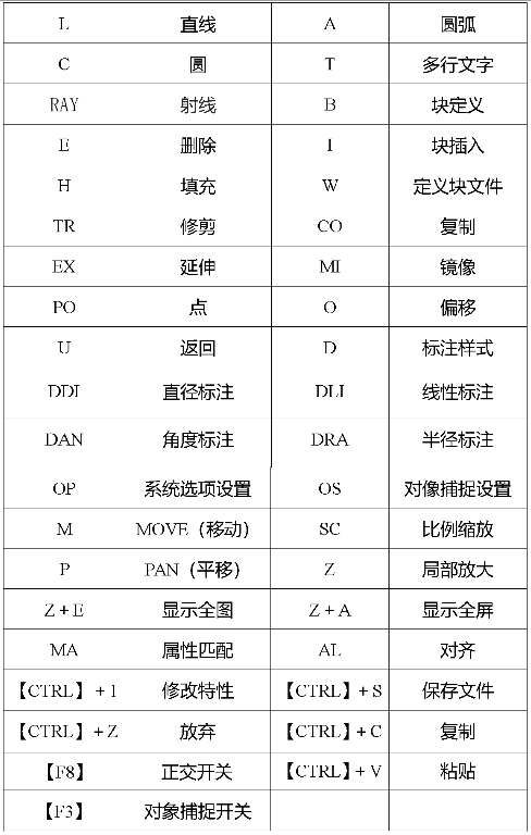 以上便是常用的超实用的cad快捷键命令大全一览表,有不清楚怎么快速使用cad命令功能的网友可对照以上的表熟习操作,这样以后就能在使用cad软件中更加高效快捷。