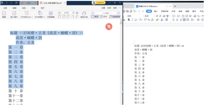 pdf文档上的文字等都是可以直接复制的,如果说文档内容不多的情况下,可以打开PDF文件后,选中需要复制的内容,新建一个Word文档,将复制的内容粘贴进去即可。不过这种方法操作麻烦,局限多,复制中容易出现乱码的情况,涉及图片的话就需要一张一张截图复制到word文档了。
