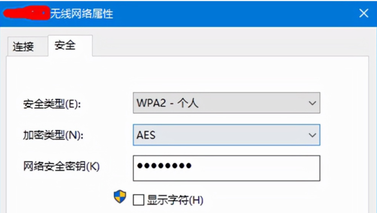 3、然后跳转到安全选项下,点击显示字符,就可以看到之前的路由器wifi密码啦。