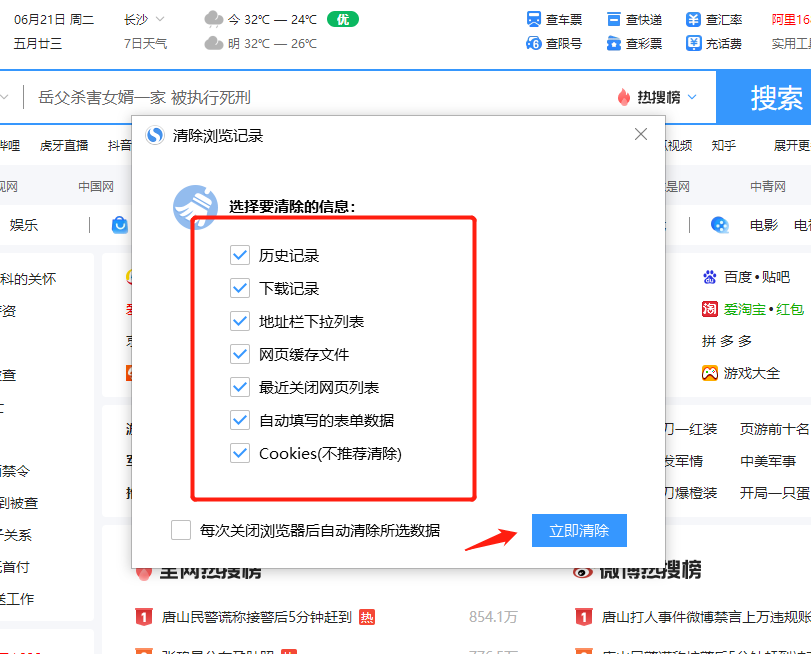 搜狗浏览器怎么清除缓存