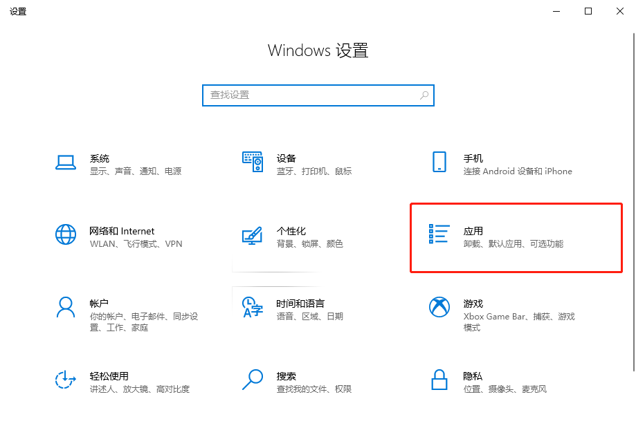 1、打开设置,点击应用;
