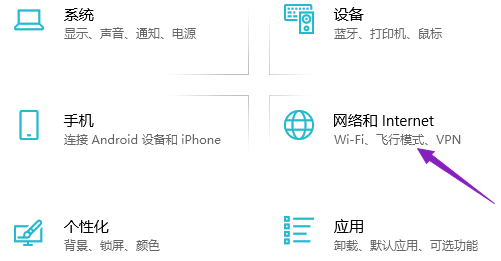 1、打开设置,点击网络和Internet;