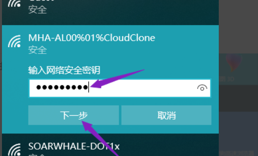 6、输入正确的密钥,点击下一步即可连接。