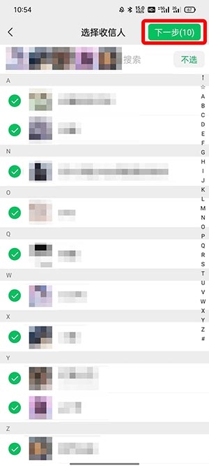 5、通选中所有微信好友,再点击【下一步】;