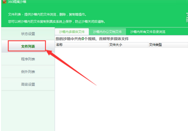 3、接着点击“文件列表”查看是否有被隔离的文件和软件。