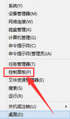 7、利用快捷键“Windows图标+X”打开菜单,选择“控制面板”。