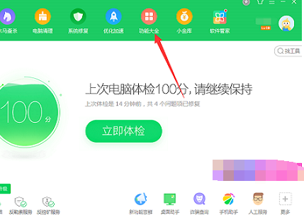 1、首先我们打开“360安全卫士”,点击“功能大全”。