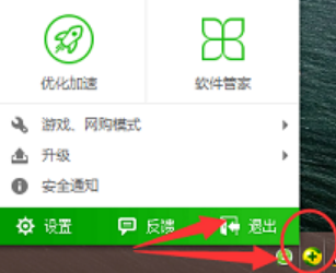 5、鼠标右键点击“360安全卫士”小图标,然后点击“退出”。