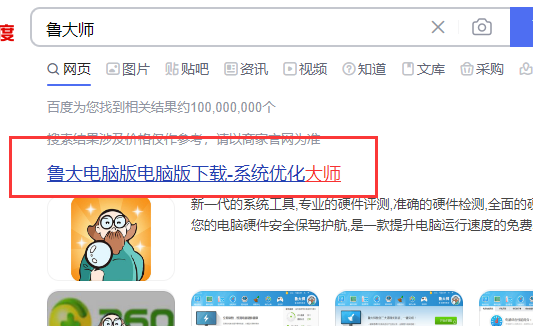 只需要在浏览器上搜索鲁大师,出来页面第一个链接点击就是鲁大师官网了,具体步骤如下。