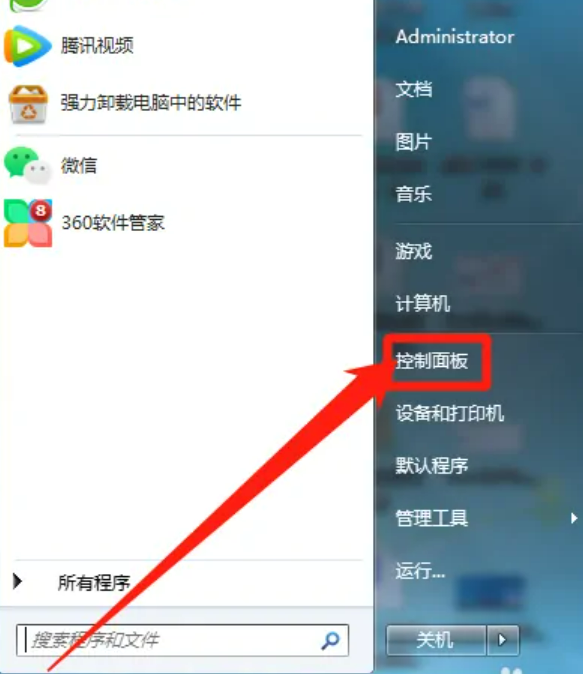 1、点击控制面板进入。