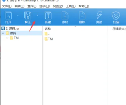 1、下载bandzip,然后打开bandzip点击打开压缩文件。