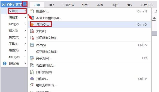 1、首先桌面上新建一个wps文档,打开wps文档,点击文件菜单中的打开。