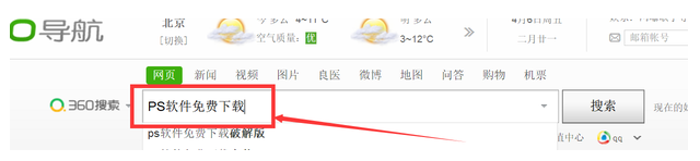 1、在浏览器上搜索“PS软件免费下载”。