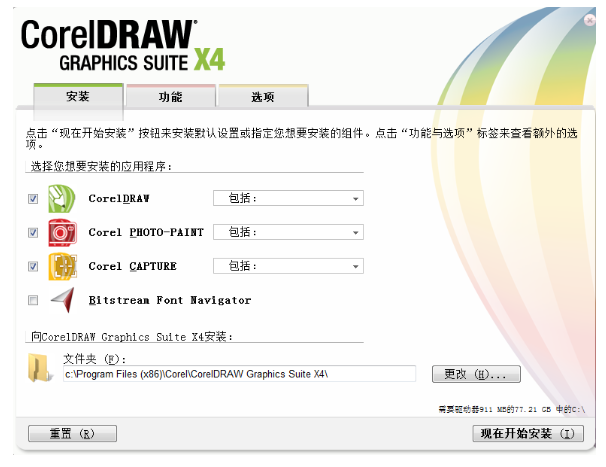 5.单击【更改】设置,将CorelDraw X4安装目录设置下。