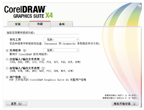 7.设置完功能界面后,进入“选项”界面。这个界面只有两个选项,根据自己需求勾选。设置后我们完后点击【现在开始】安装即可。