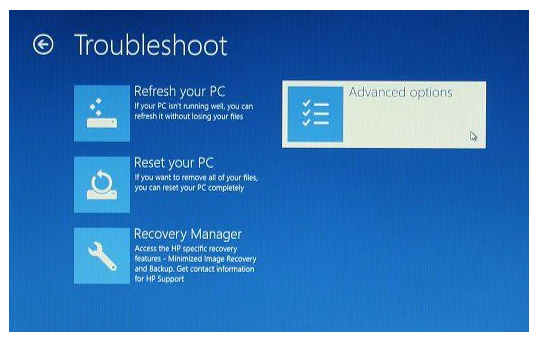 3、点击疑难解答,然后点击高级选项。
