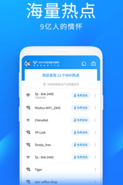 wifi万能钥匙极速版是一款非常好用的手机wifi工具,相比于正式版来说体积更为小巧,不过功能上一点儿也没有阉割。支持一键连接公共安全wifi,而且这款wifi万能钥匙极速版使用起来完全免费,只要附近有wifi热点,就可以一键连接。