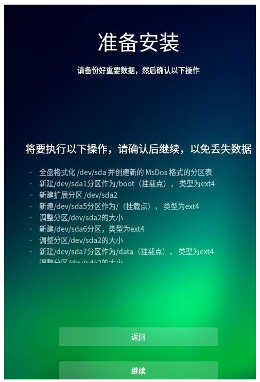 3.选择完成后,就准备开始安装系统。在此界面中点击继续。