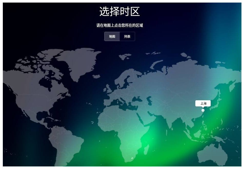 6.重启完成后进入到选择时区的设置页面。选择国内的上海时区。