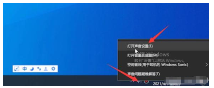 2、如果没有电脑没有静音,鼠标右击击喇叭,选择打开声音设置。