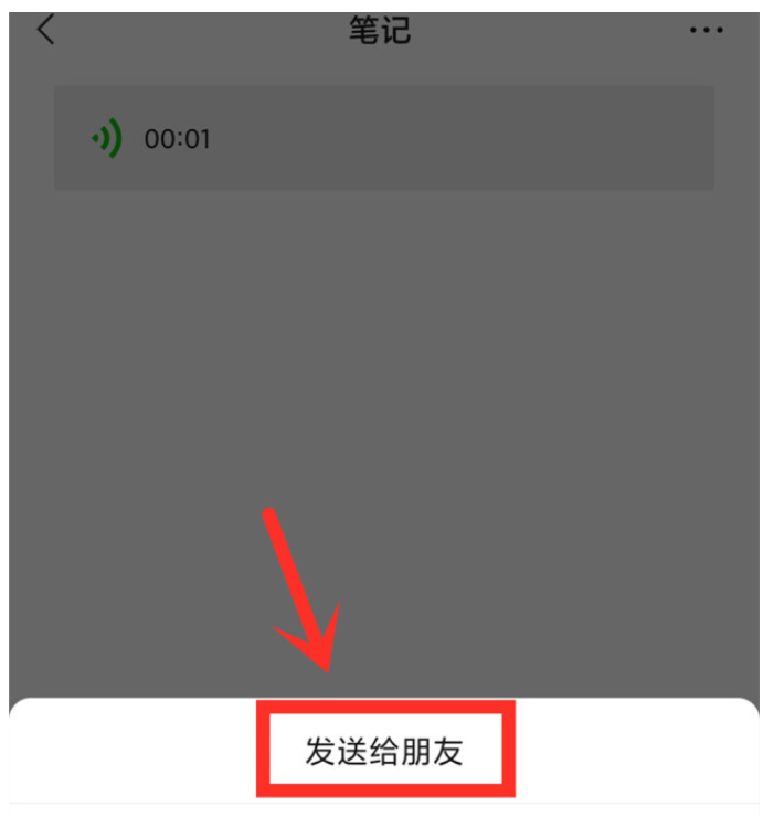 5、随后打开笔记,点击语音,点击上方的三个小点,然后选择【发送给好友】即可将语音转发给好友。