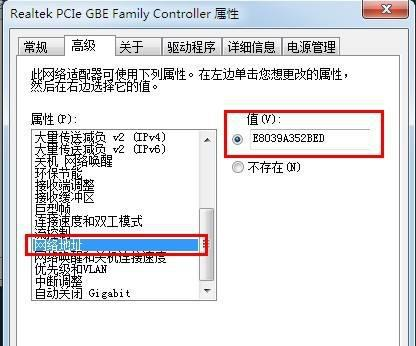 8、选择网络地址,右边的值即为mac地址。