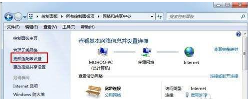 3、点击更改适配器设置。