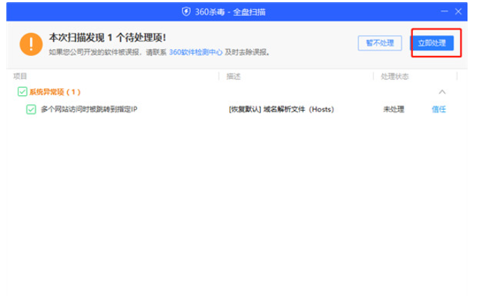 6、点击立即处理即可。