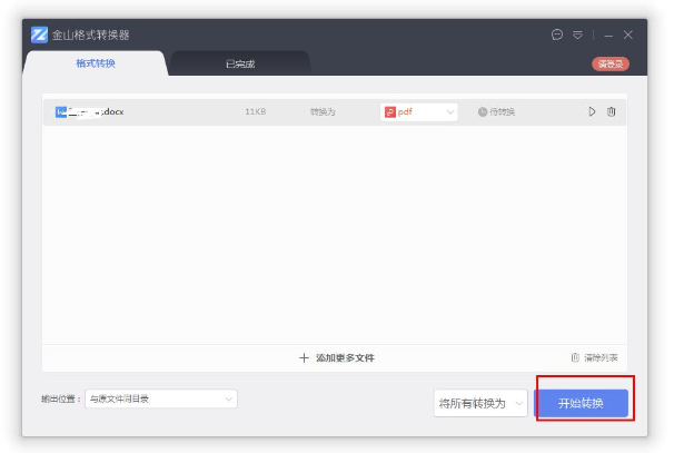 3.完成上述所有操作步骤,点击“开始转换”按钮即可开始转换文件格式了。