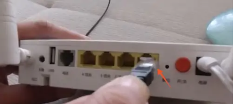 1、首先借助一根网线将其中一头插入到光猫的千兆接口里面。