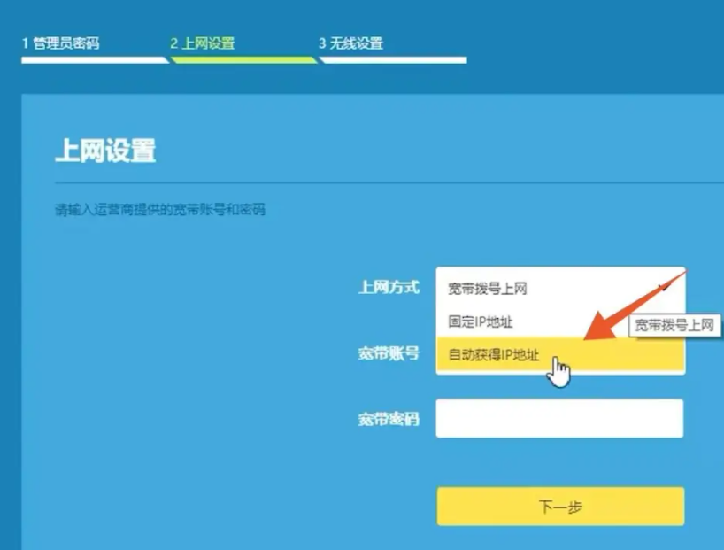 6、如果是光猫路由器一体的,就将上网方式选择自动获得ip地址。