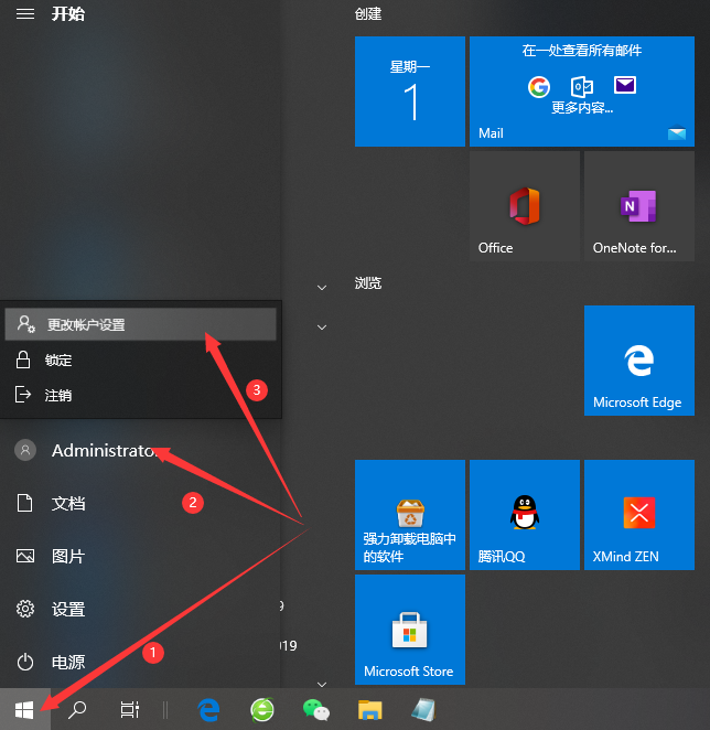 1、点击电脑桌面左下角的开始菜单,选择账户,点击更改账户设置。