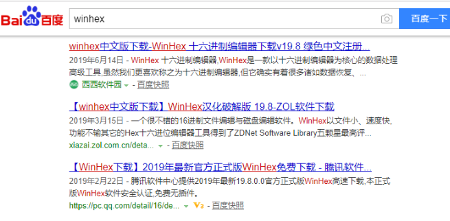 1、打开浏览器搜索winhex软件并下载安装到电脑。