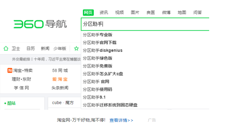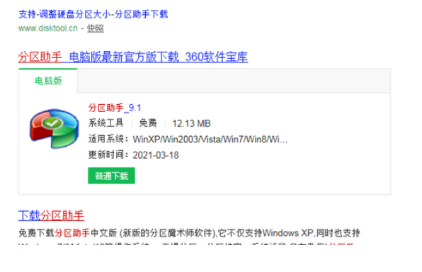 1、浏览器搜索分区助手。