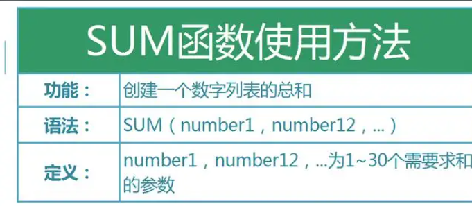 SUM函数是一个求和函数,以将单个值、单元格引用或是区域相加,或者将三者的组合相加。