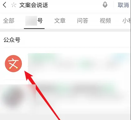 3、在搜索框中输入“文案会说话”并点击公众号,然后进入到聊天界面。