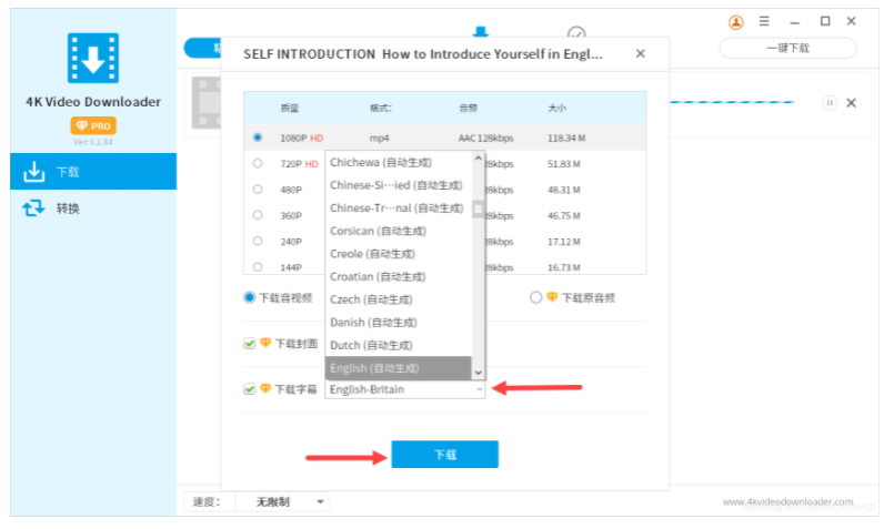4、选择你喜欢的字幕语言,然后点击下载按钮。